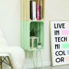 Estantería bicolor de estilo nórdico en madera de pino gallego. Fabricado íntegramente en España con barnices y pinturas ecológicos. Las patas de hierro le dan al mueble un aire industrial. Perfecto para entradas, recibidores, salones y dormitorios. Disponible en los tres colores LOFTI (rosa, amarillo o verde).