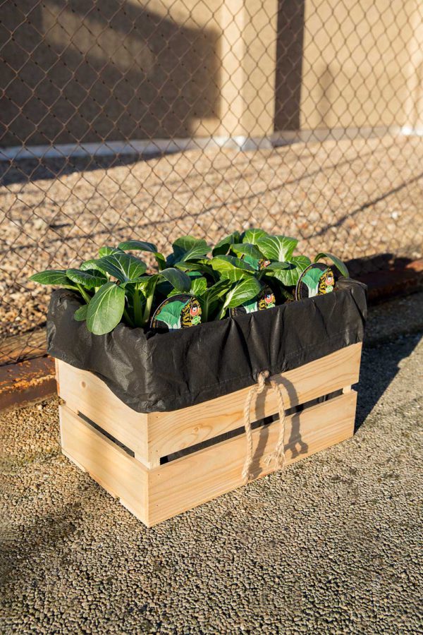 Macetero de madera de pino gallego para huerto urbano o decoración con plantas. Fabricado íntegramente en España utilizando barnices ecológicos.